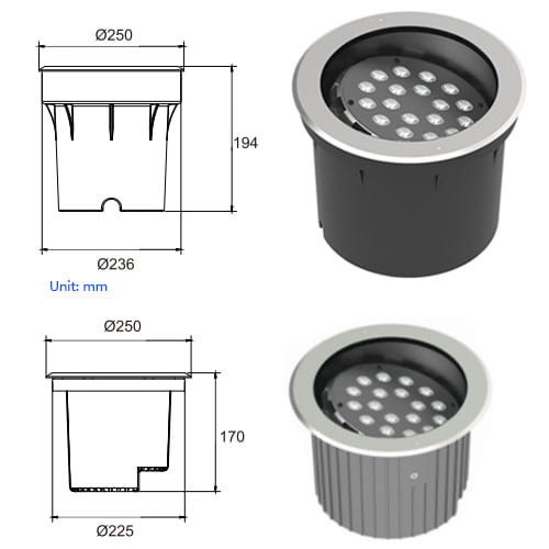 1. Dieser LED Bodeneinbaustrahler verfügt über ein Design mit einstellbaem Lampenkörperl,